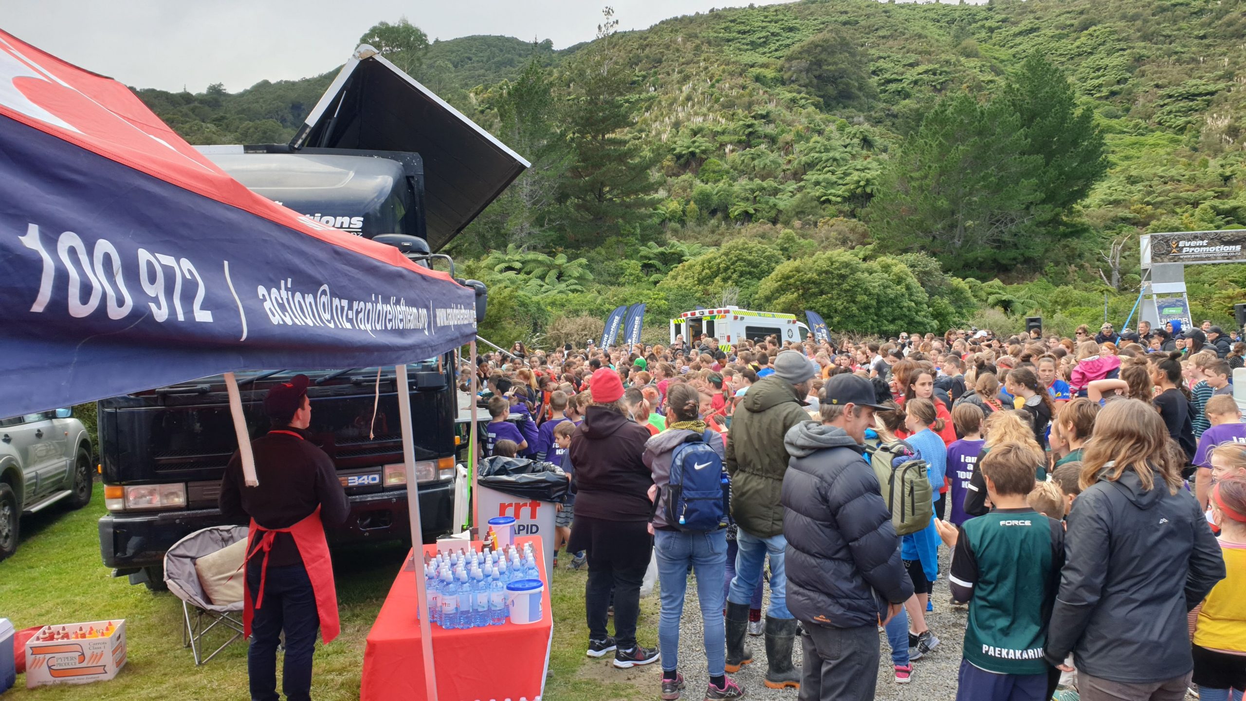Day 2 another 800 Year 3 to 8 kids filled the field, motivated by a most hilarious and enthusiastic Ronald McDonald clown. Once again as they made it across the finish line they were offered a free bottle of well-deserved RRT spring water. One of the impressive things about the junior run is that it wasn’t timed; each participant was given the impression that they had put their best foot forward, no matter how long they took or where they came out. The day was a huge highlight for all the students involved, and the RRT team felt enthused by all the youthful energy being directed toward a good course.