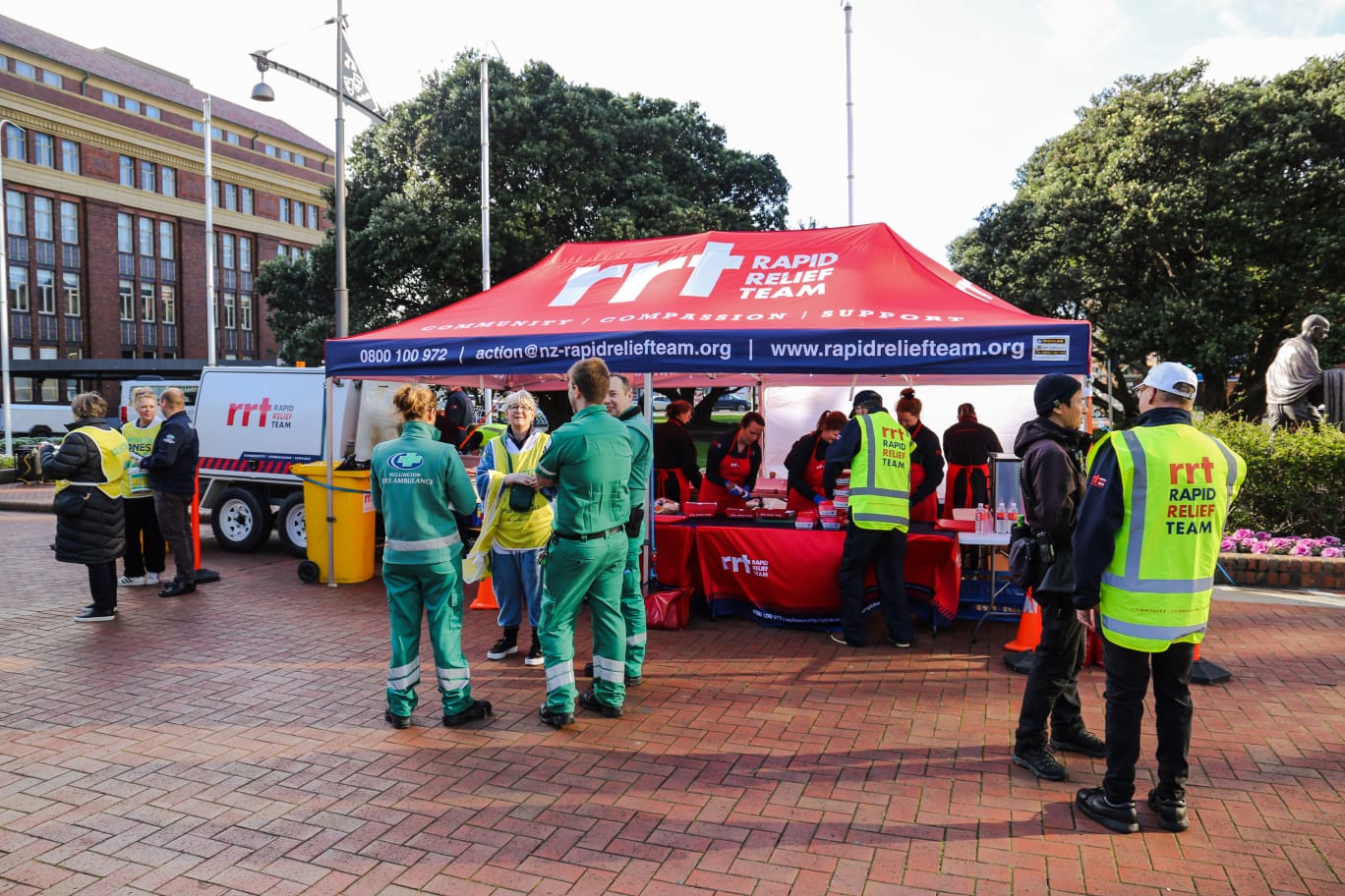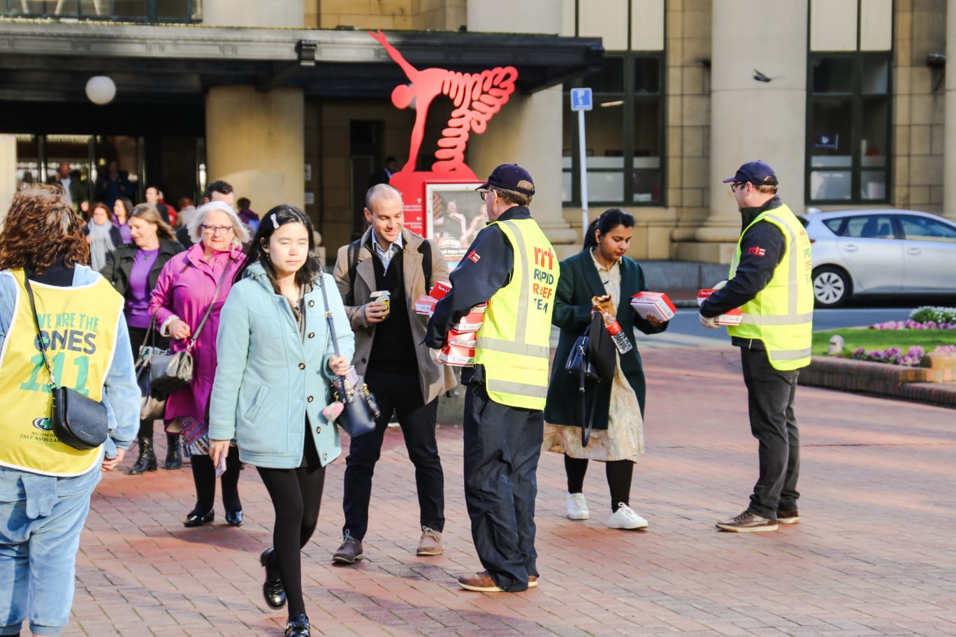 The Rapid Relief Team, known for its philanthropic endeavours, was thrilled to be a part of the Wellington Free Ambulance Onesie Day this year. RRT actively contributed by providing over 1000 free melt-in-your-mouth breakfast burgers to commuters at the Wellington central railway station who were supporting the Onesie Day Appeal. Staff and volunteers from Wellington Free Ambluance were alongside collecting donations from commuters. By joining forces with the Wellington Free Ambulance, RRT aims to amplify the impact of this fundraising initiative and help raise vital funds for the ambulance service.