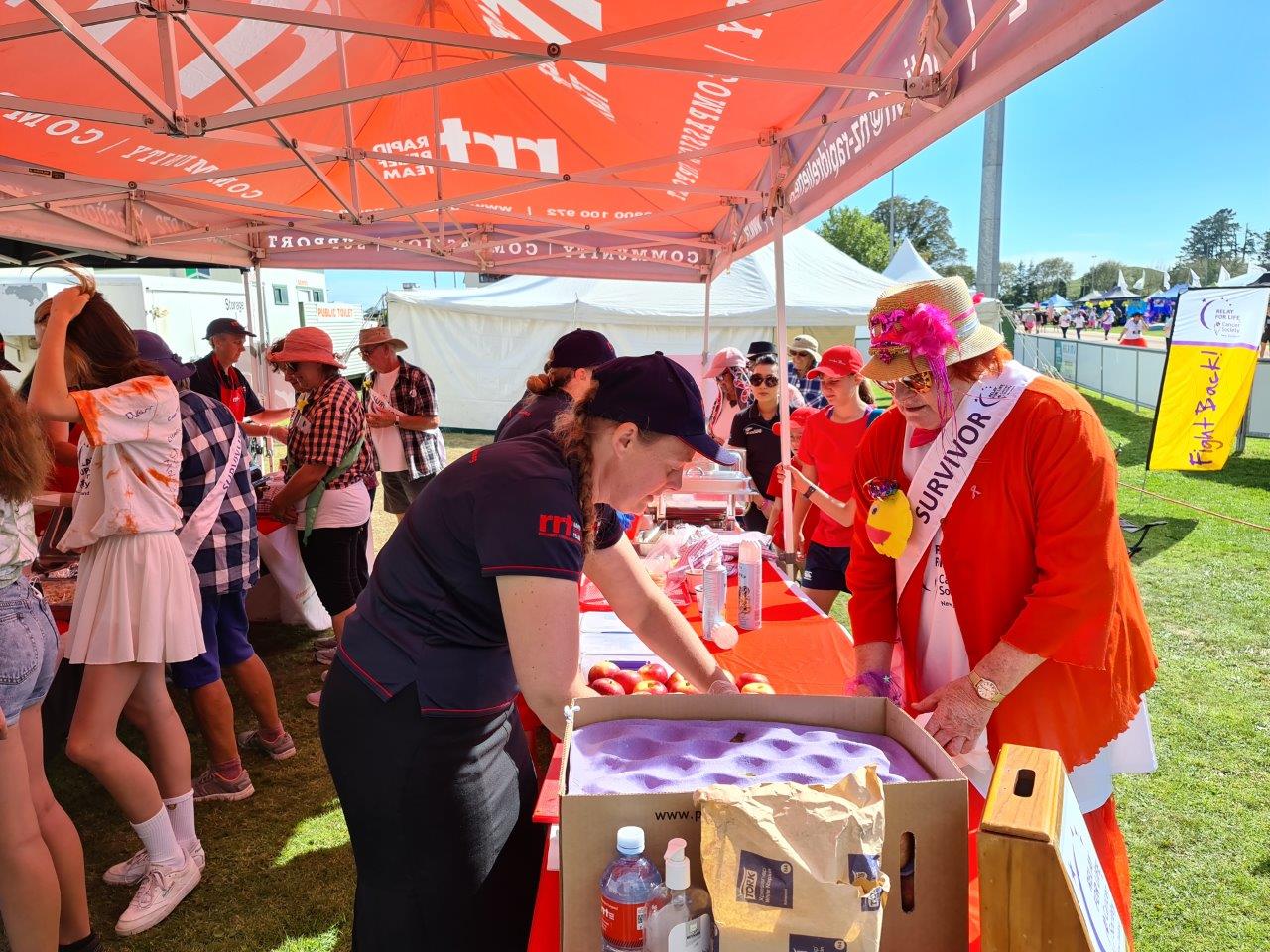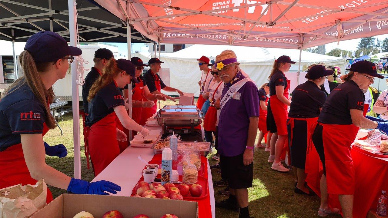Soon after the 10am start, a hearty aroma of kiwi bbq started wafting through the tents of supporters. 18 RRT volunteers were only too happy to give up their time to show their support toward those affected by cancer.
