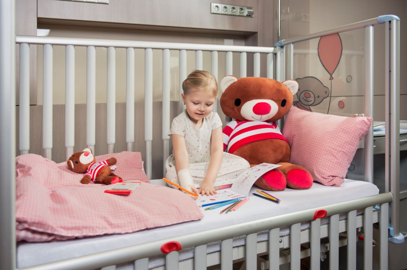 The Paediatric cot is a state of the art pre-school children’s bed. It provides excellent access for nursing staff with electric positioning, telescopic siderails and column construction mechanism. The cot has very high safety parameters and looks great with a child-friendly design.