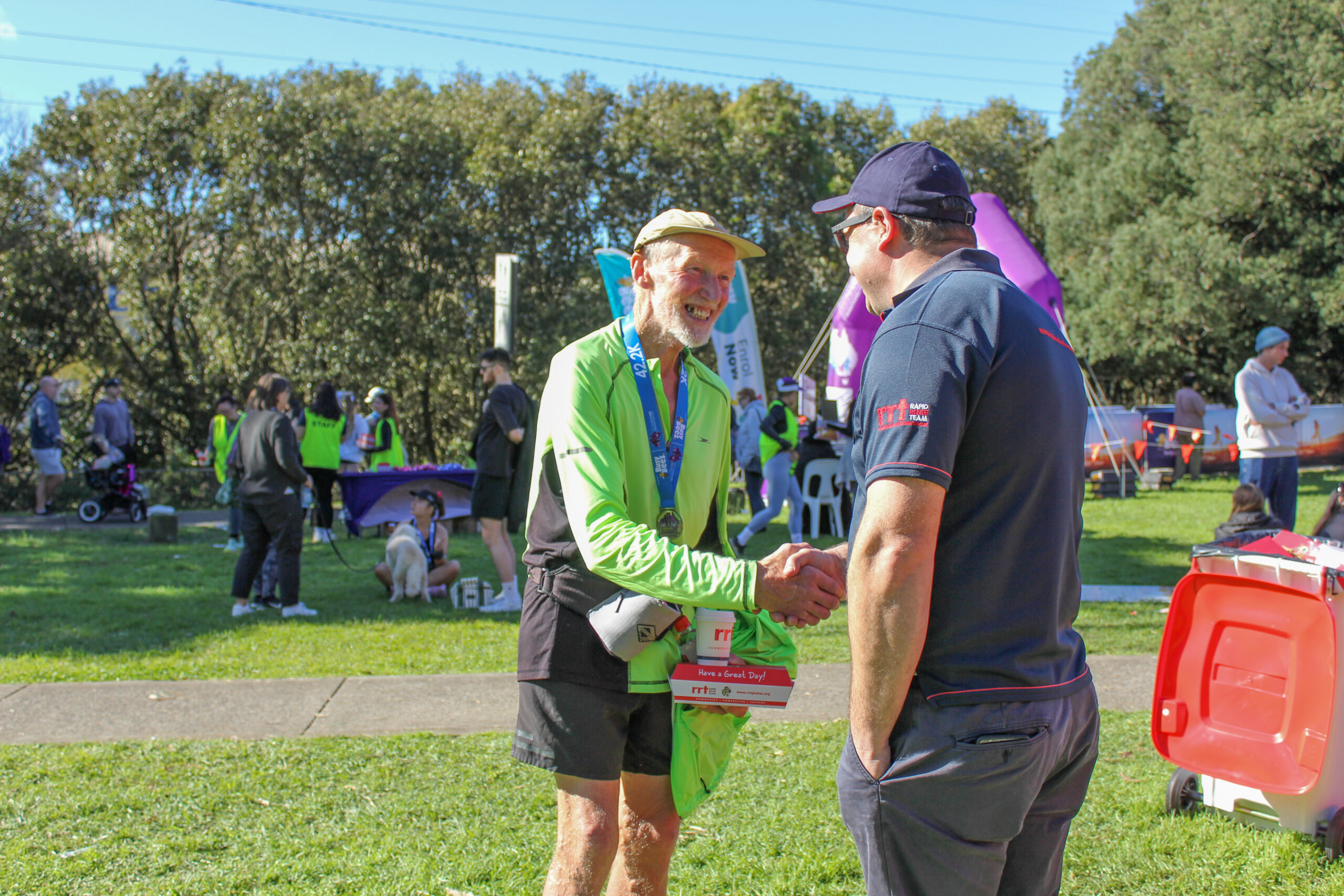 RRT volunteers were at six of the 777 Marathons – in Adelaide, Canberra, Hobart, Melbourne, Perth and Sydney – offering nutritious meals, hot barista made coffee and words of encouragement.