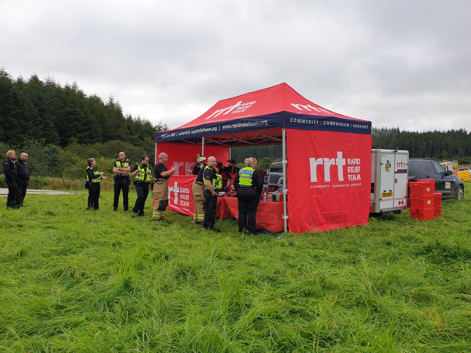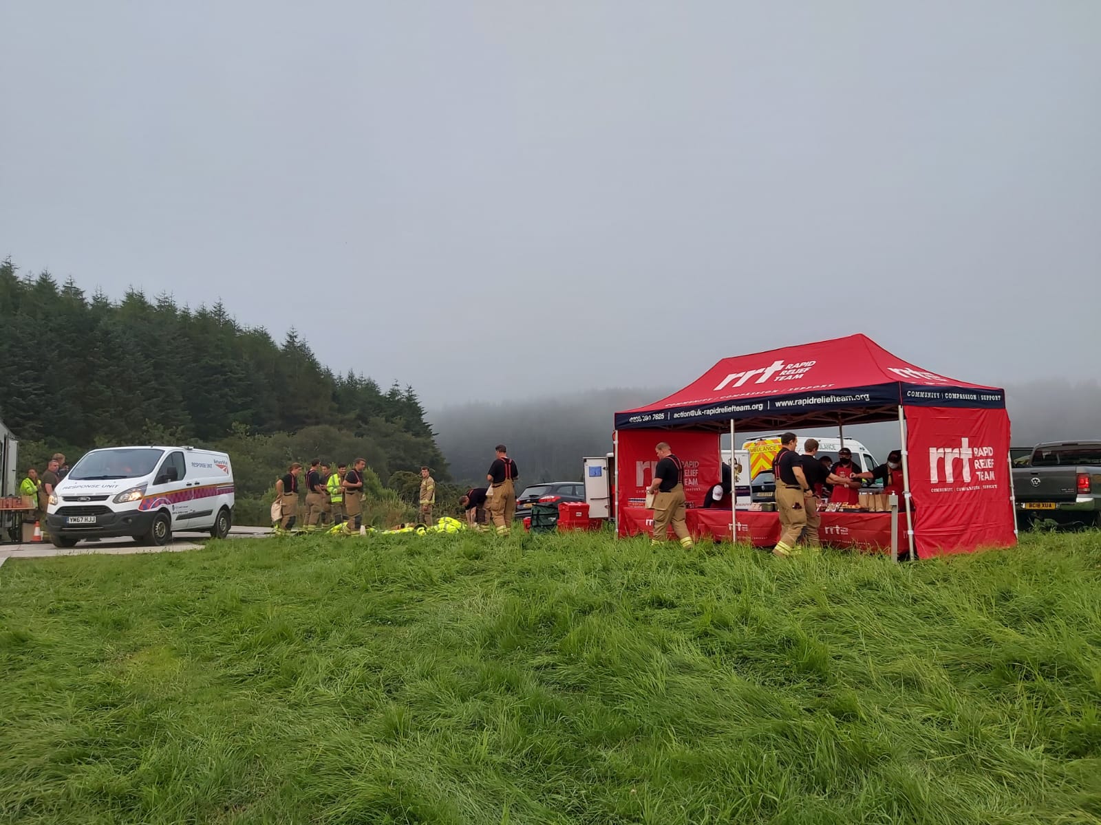 The site of the incident was fairly remote, posing a challenge for the emergency response. Many of the crews had been working tirelessly for several hours when RRT Aberdeen was called in to support the Emergency Service response by providing them with refreshments.