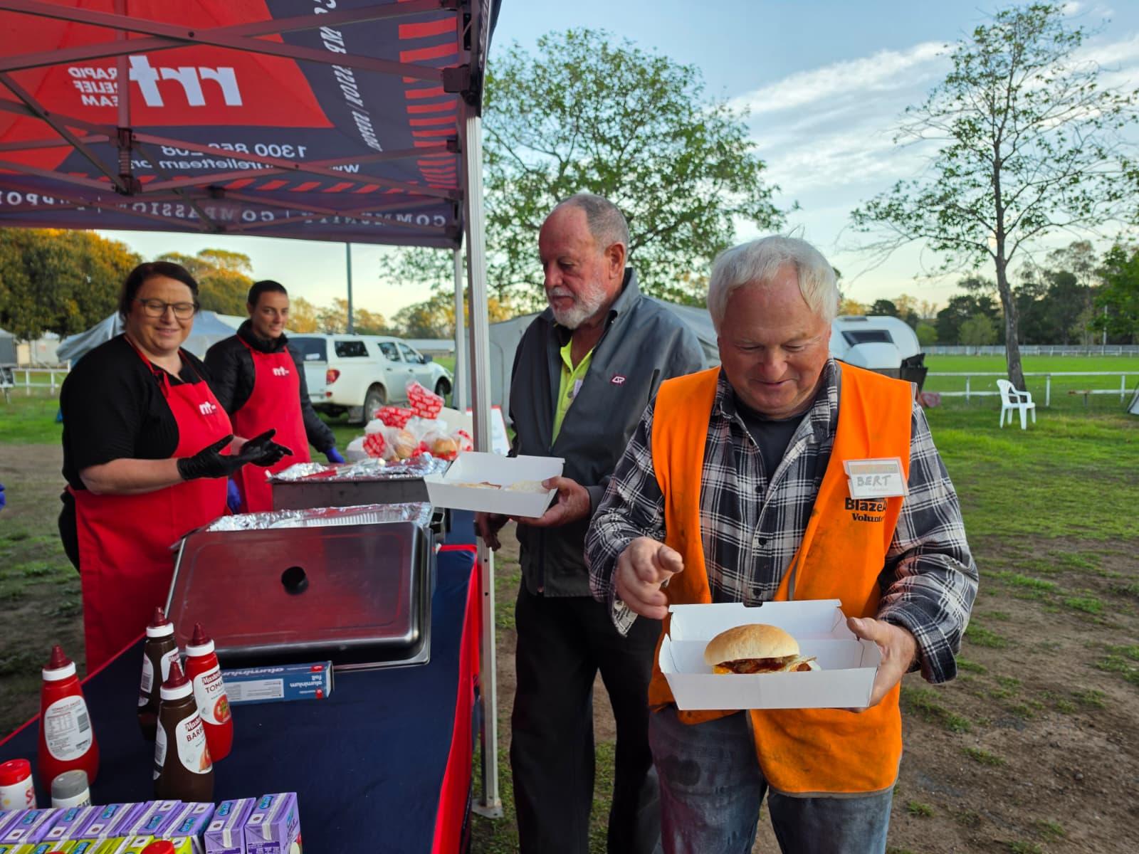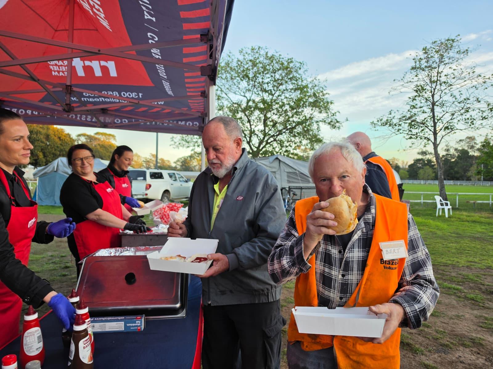 RRT served breakfast burgers and barista-made coffee to the landholders as well as 40 BlazeAid volunteers who have been generously providing free labour to farmers during recovery efforts.